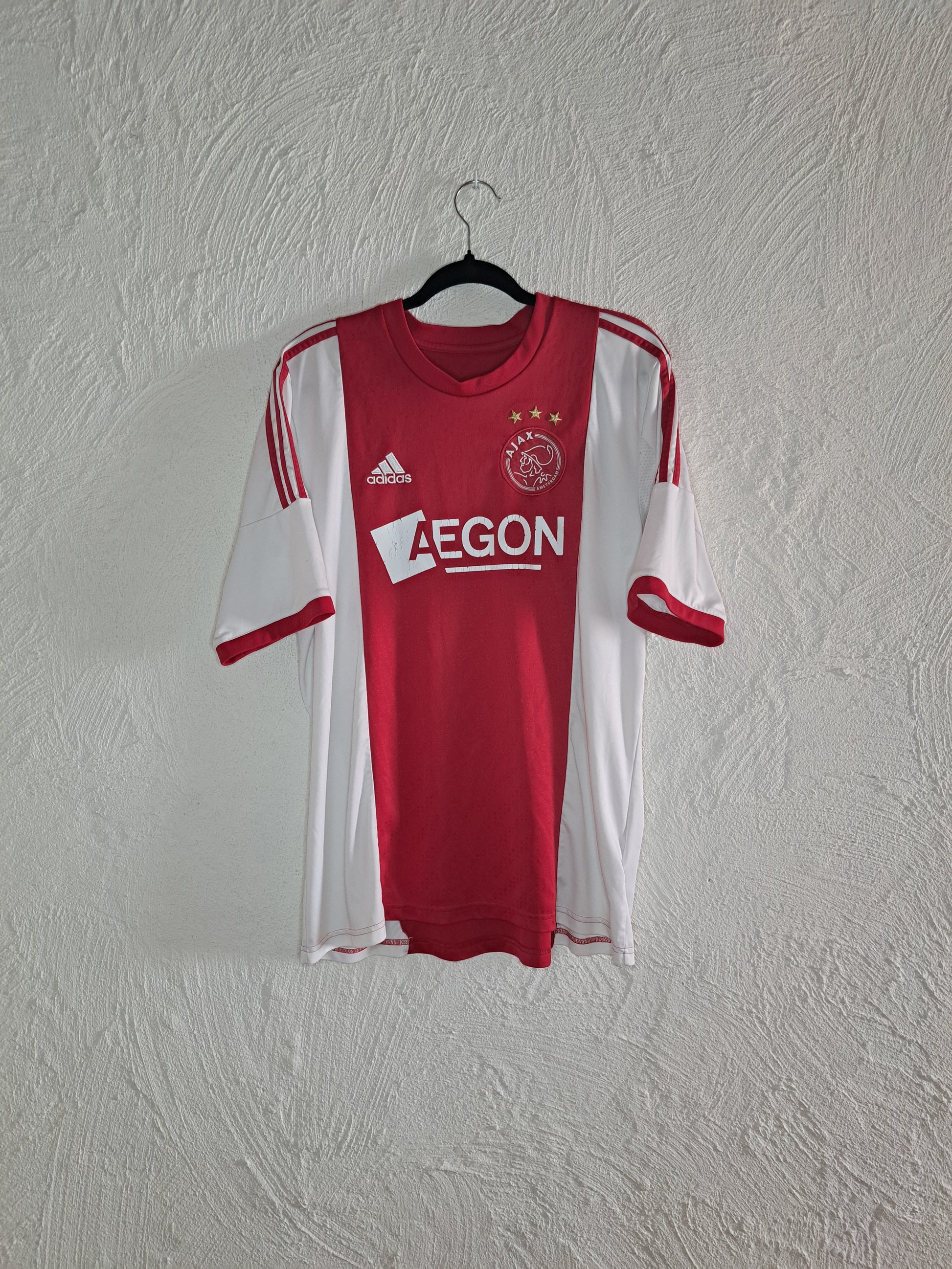 Ajax home shirt from the 2013/14 season, featuring Ricardo Kishna’s name and number on the back. The classic white-and-red adidas design carries the bold AEGON sponsor across the chest, a look instantly tied to Ajax’s dominance in the Eredivisie under Frank de Boer. With Kishna’s name on it, the shirt recalls the rise of a talented academy product making his first steps in the Amsterdam Arena.