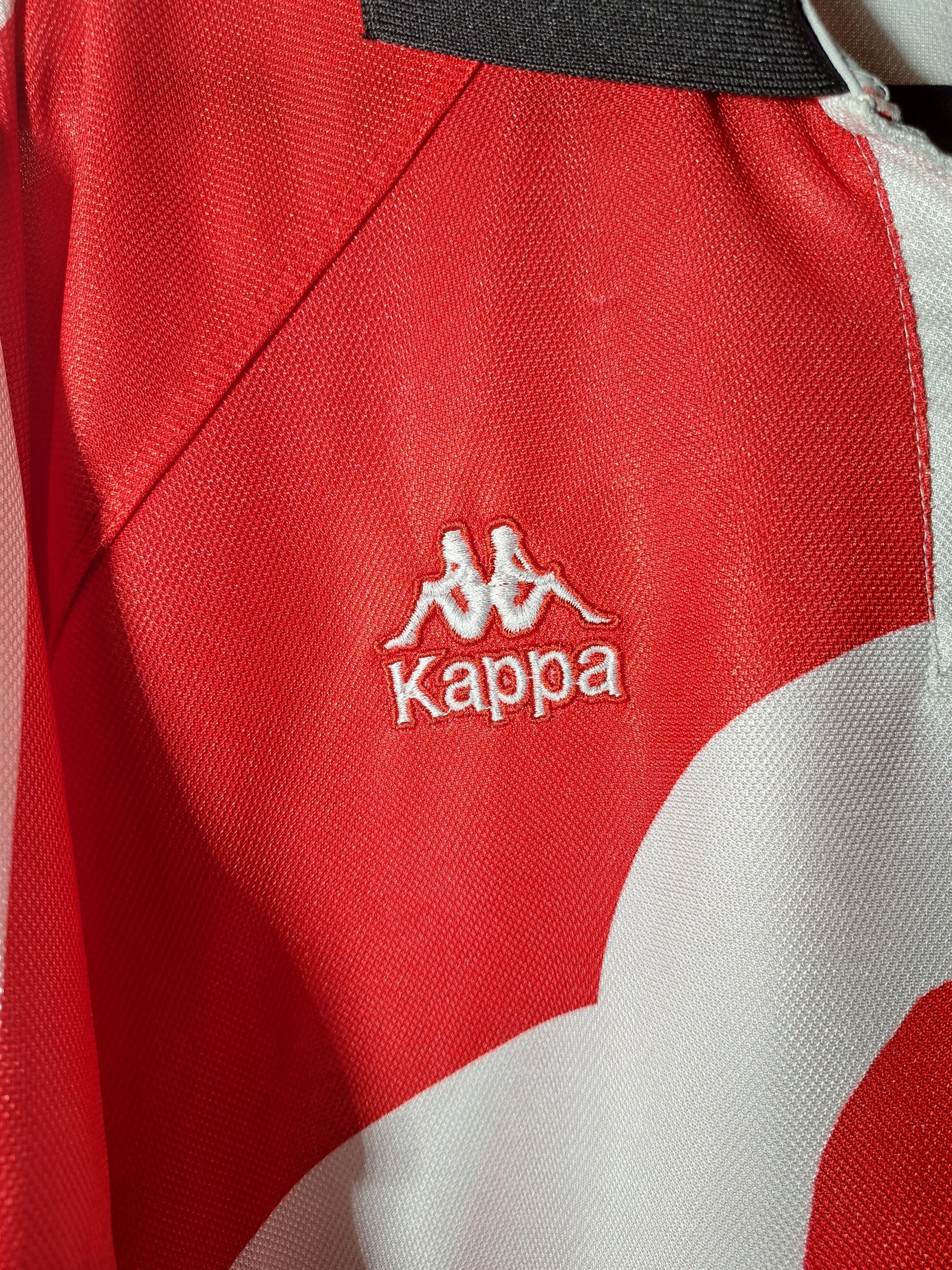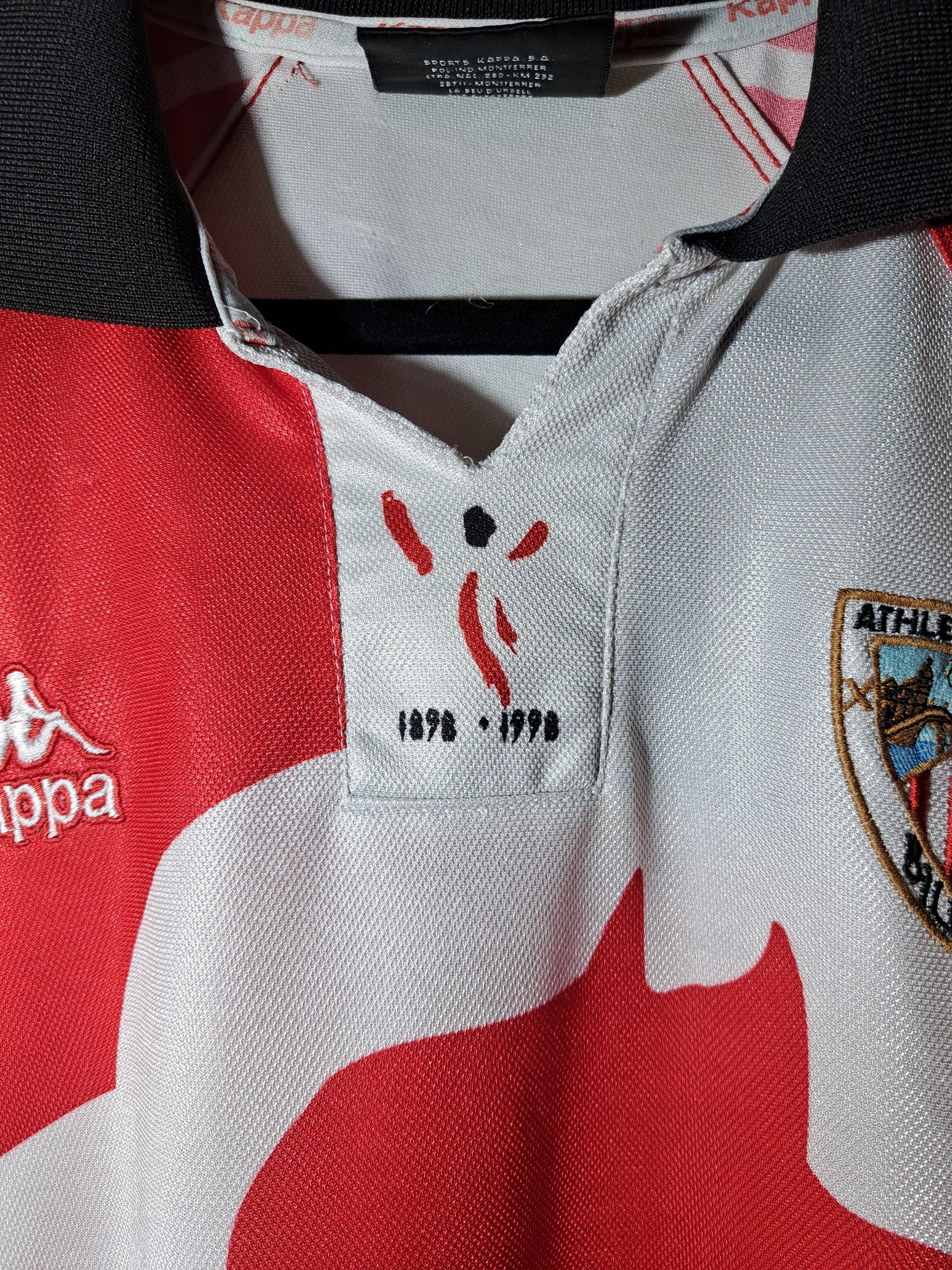 Athletic Bilbao home shirt from the 1997-1998 season, the club’s centenary edition, featuring the classic red and white lion with special detailing to mark 100 years of Basque pride and tradition.