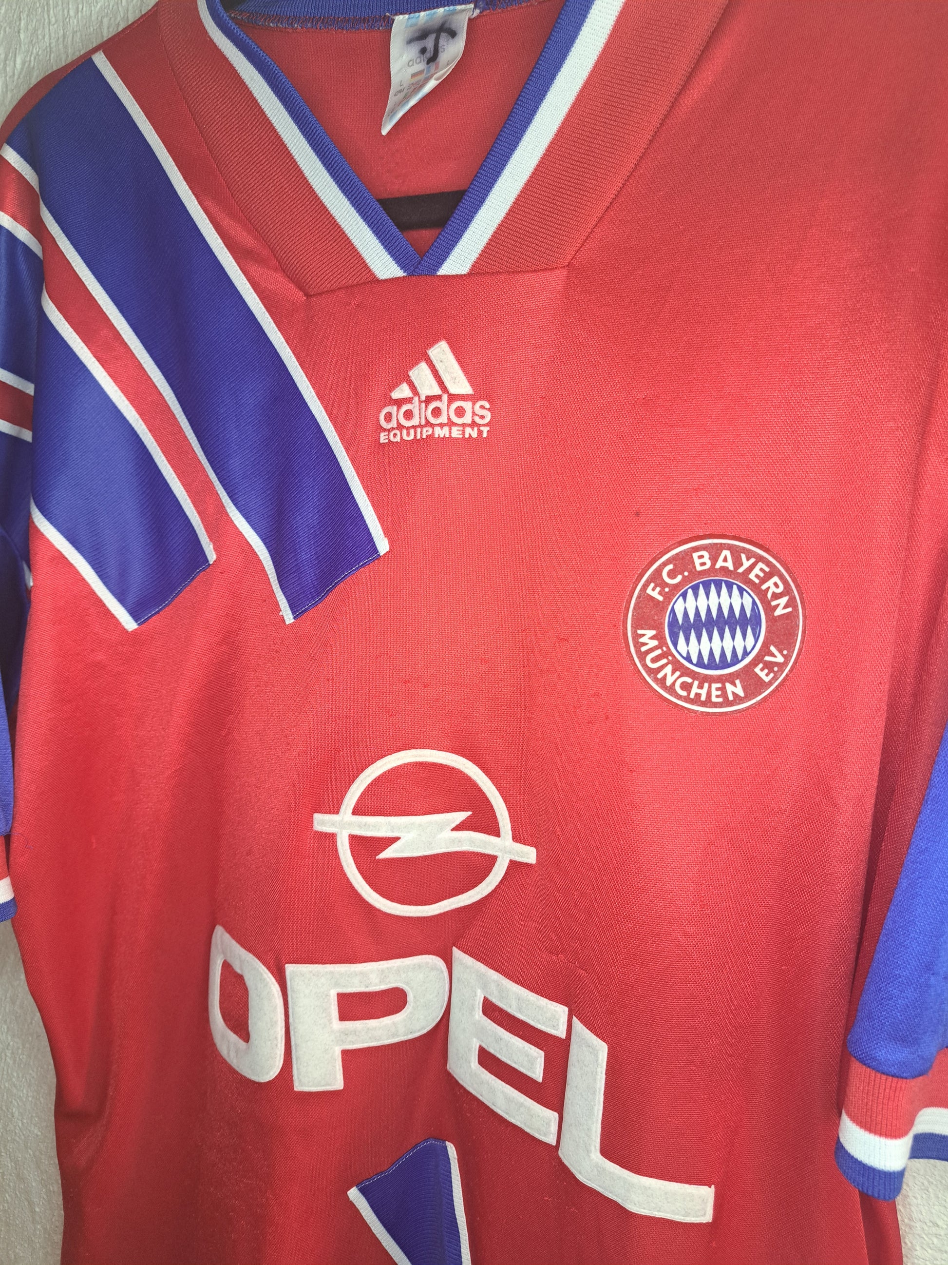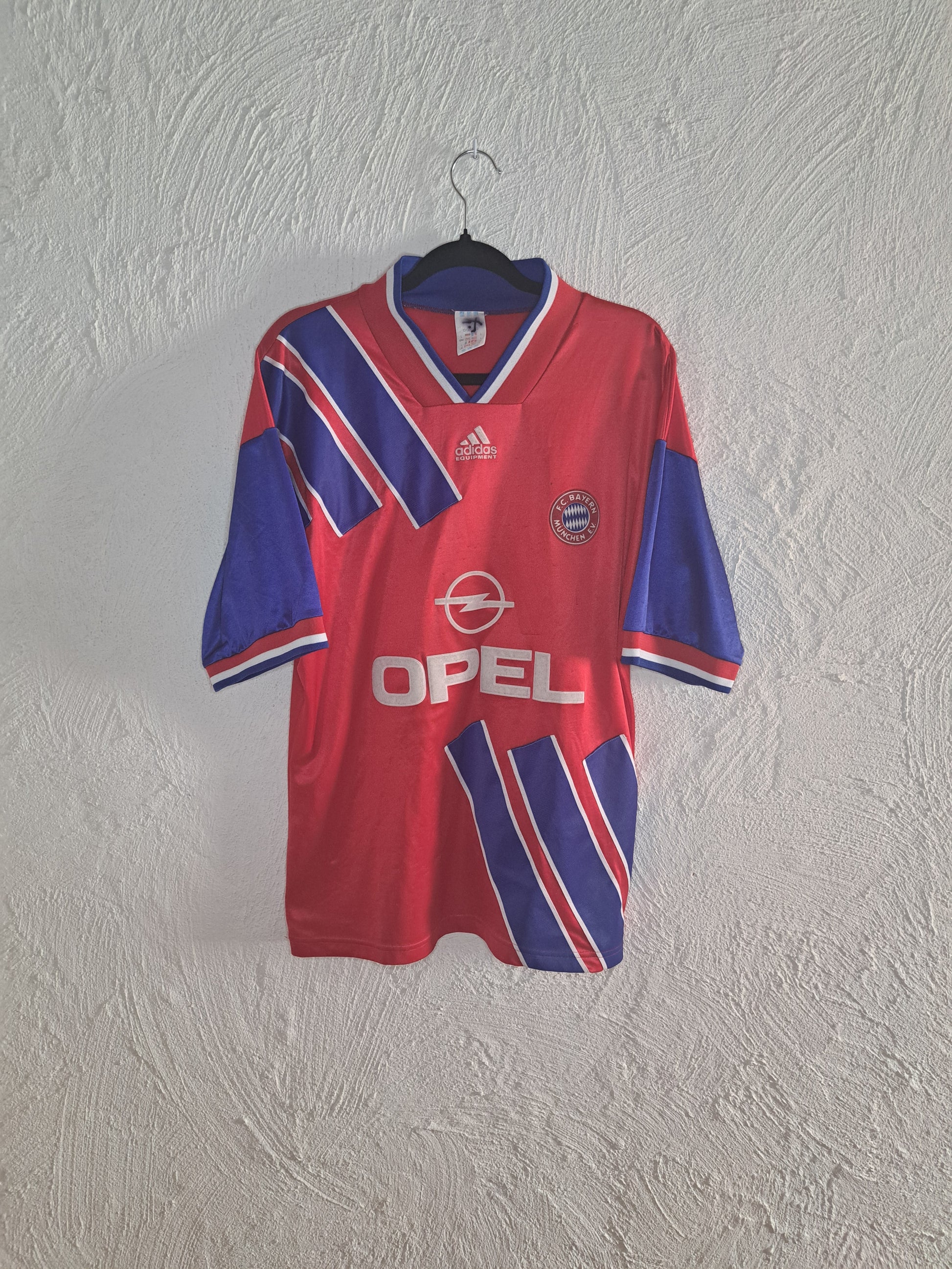 This Bayern München 1993-1995 home shirt is a vintage piece for football enthusiasts. Made for fans of all ages, this Bayern munchen shirt provides a nostalgic touch to any collection. Despite some signs of wear due to its old age, this jersey is a must-have for football fans.
