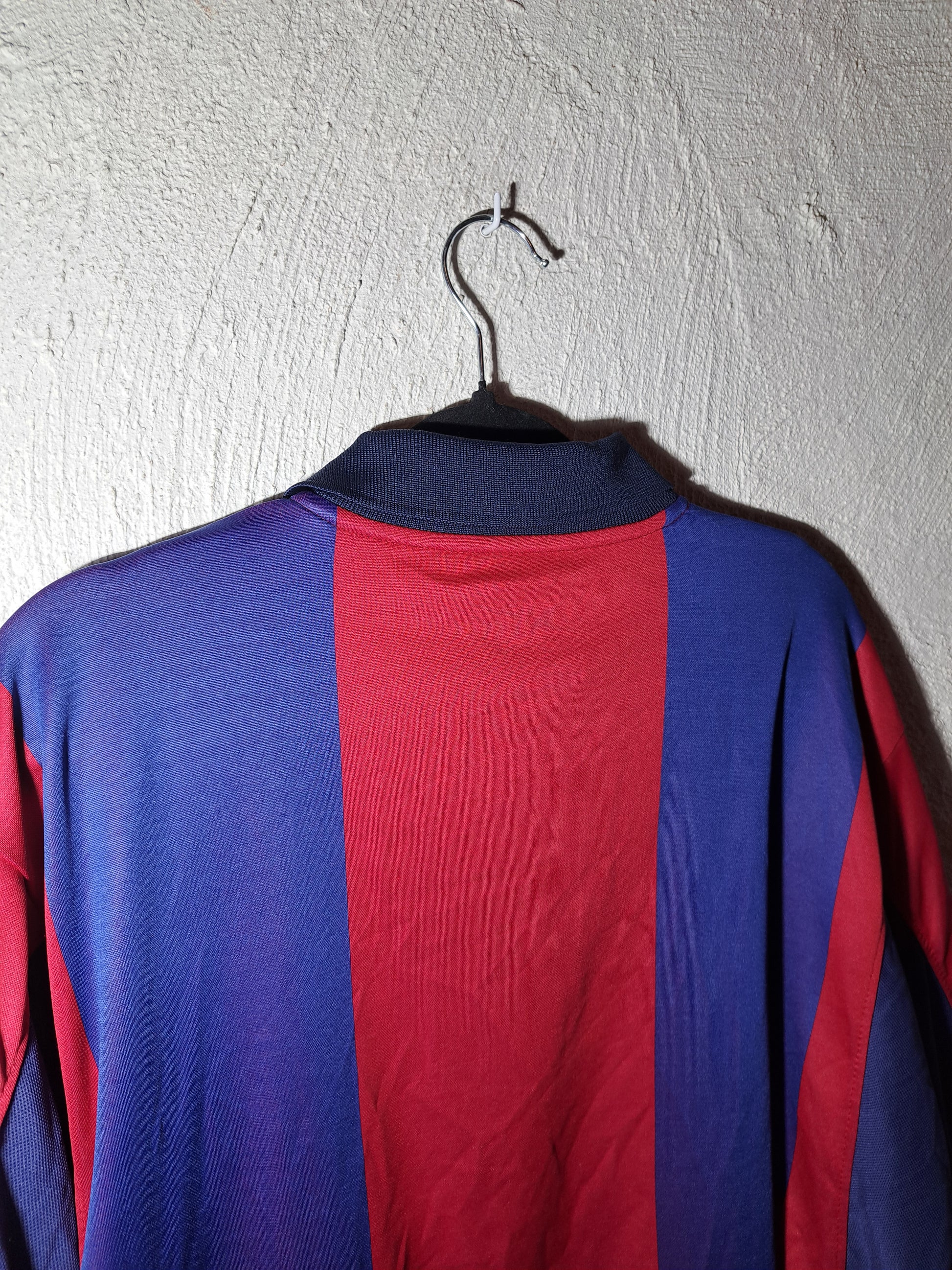 FC Barcelona home shirt from the 2000–2001 season, classic blaugrana stripes by Nike with a simple, traditional layout and embroidered crest, reflecting the club’s timeless identity at the turn of the century. A clean and iconic look from an era of steady evolution.