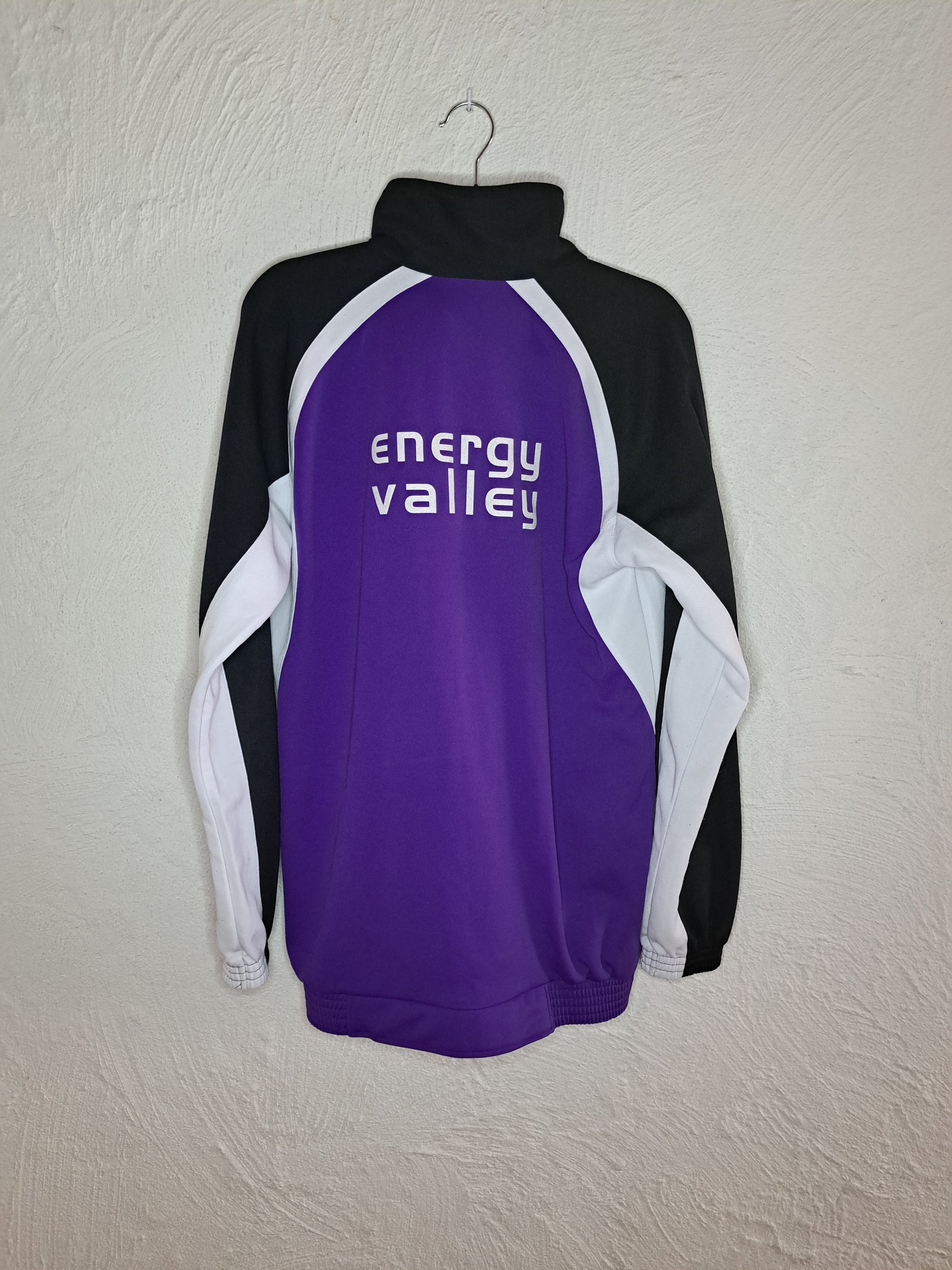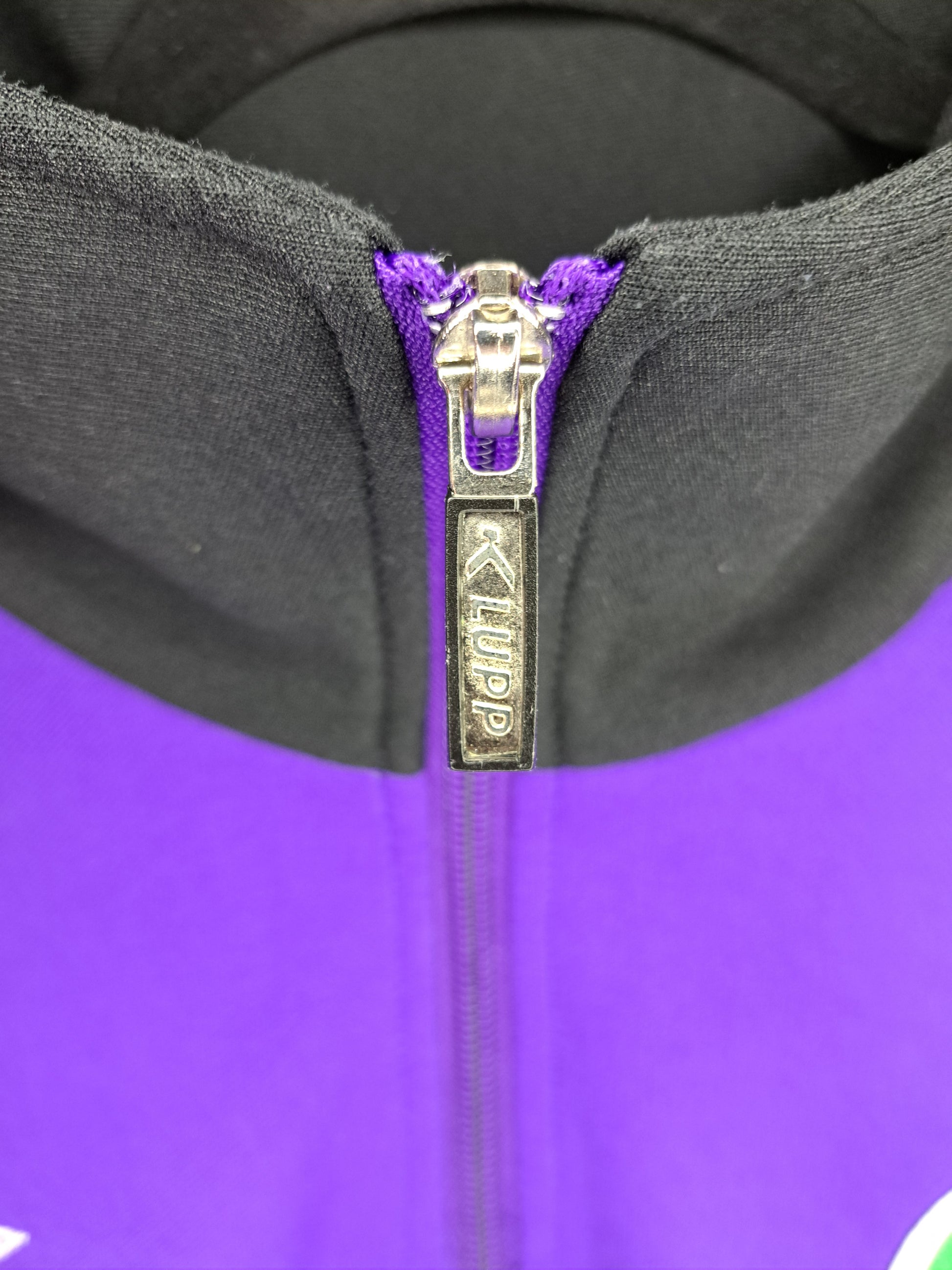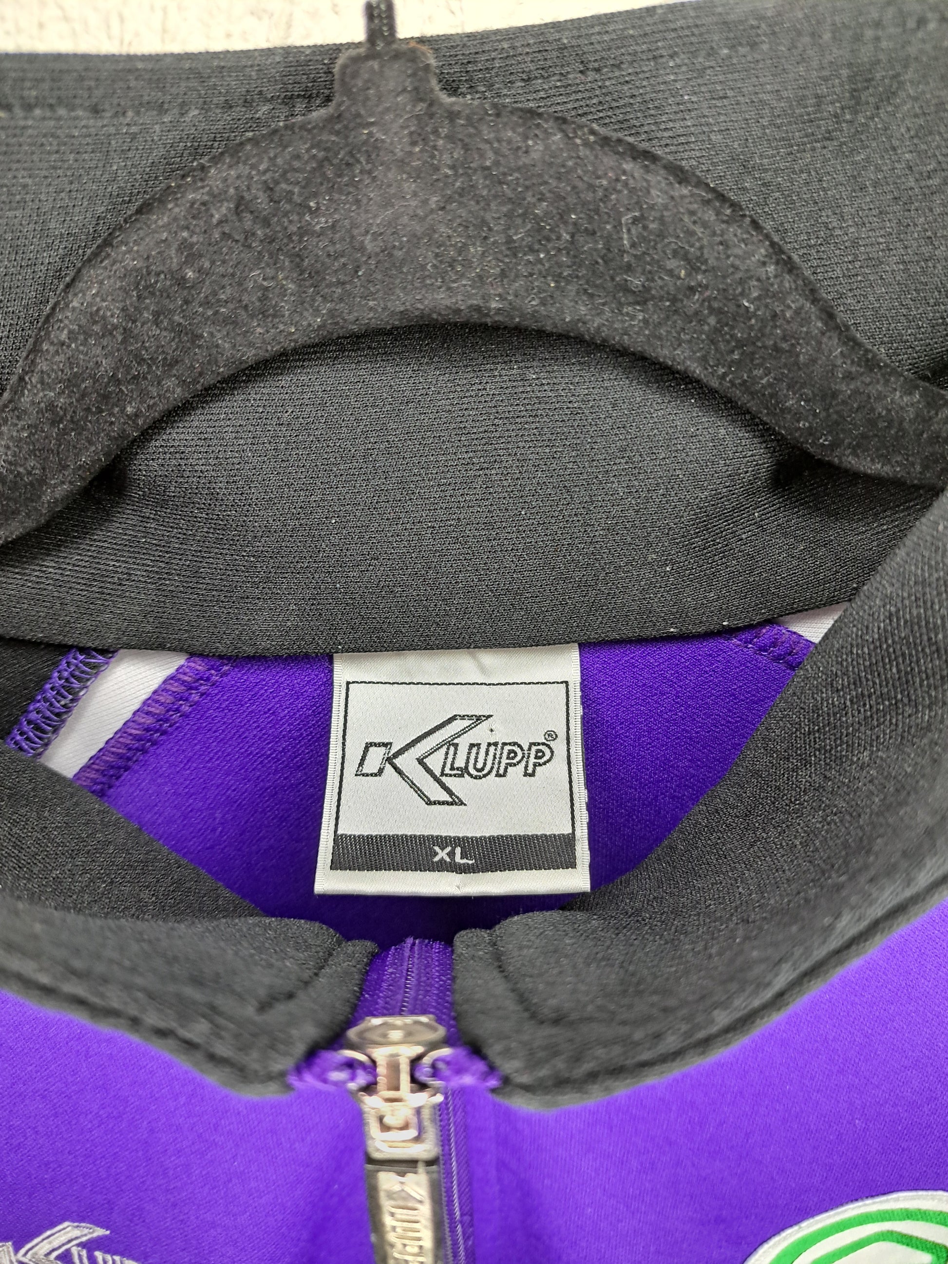 This FC Groningen 2009-2010 training jacket, produced by Klupp, is a rare and stylish piece from the club’s Eredivisie campaign. Unlike the traditional green and white home colors, this jacket features a bold purple base with black and white detailing, making it stand out both on and off the pitch.