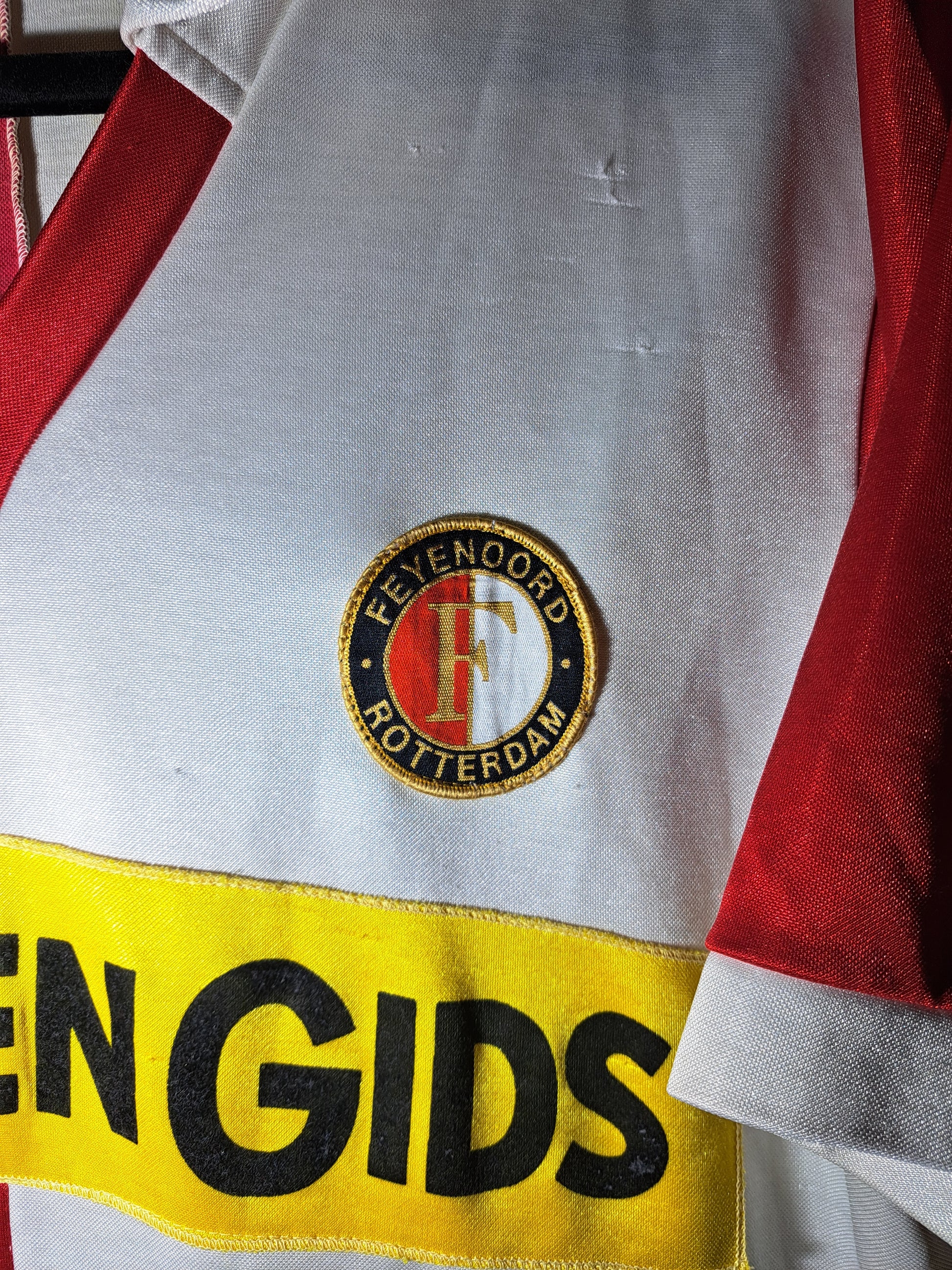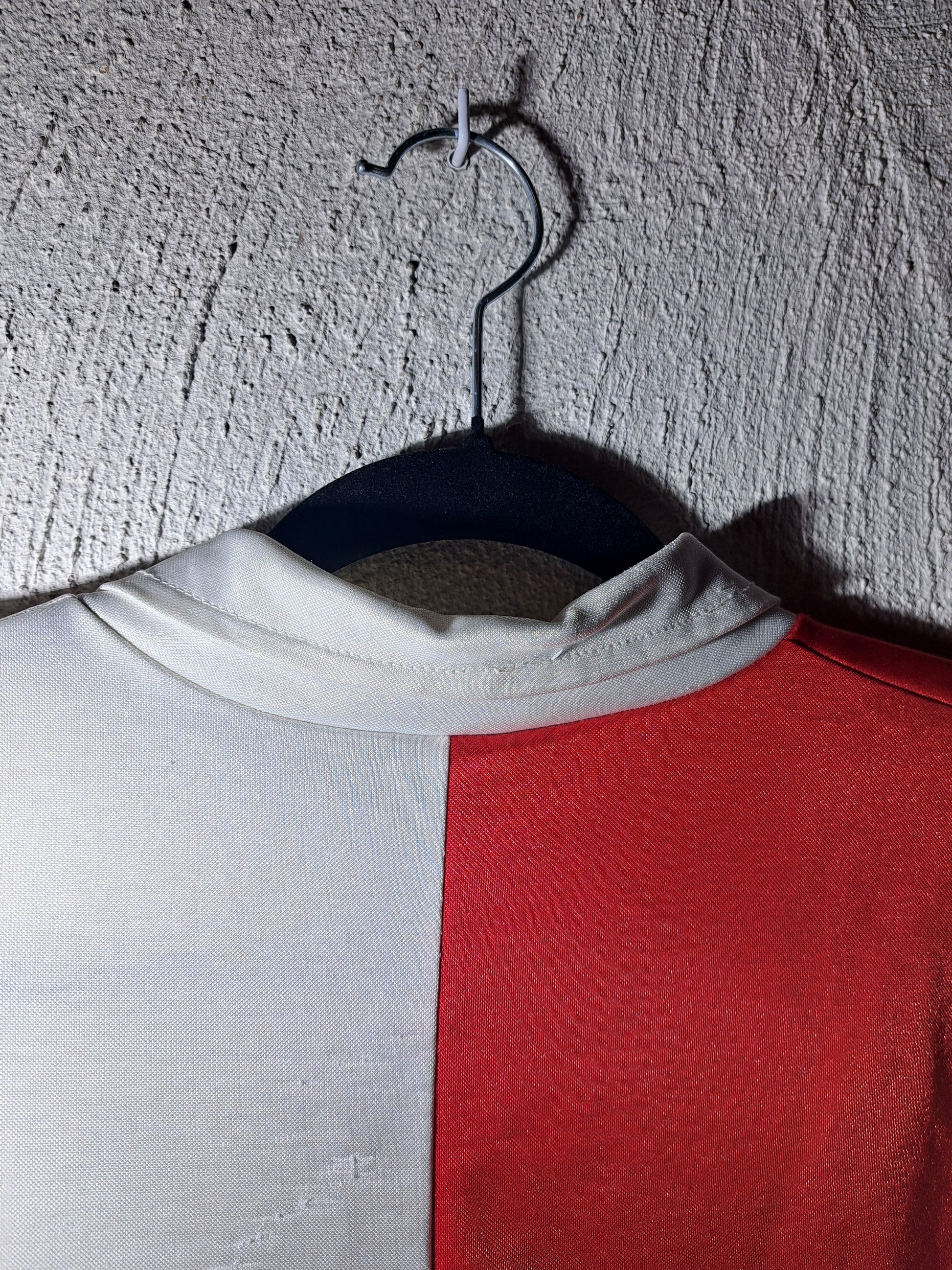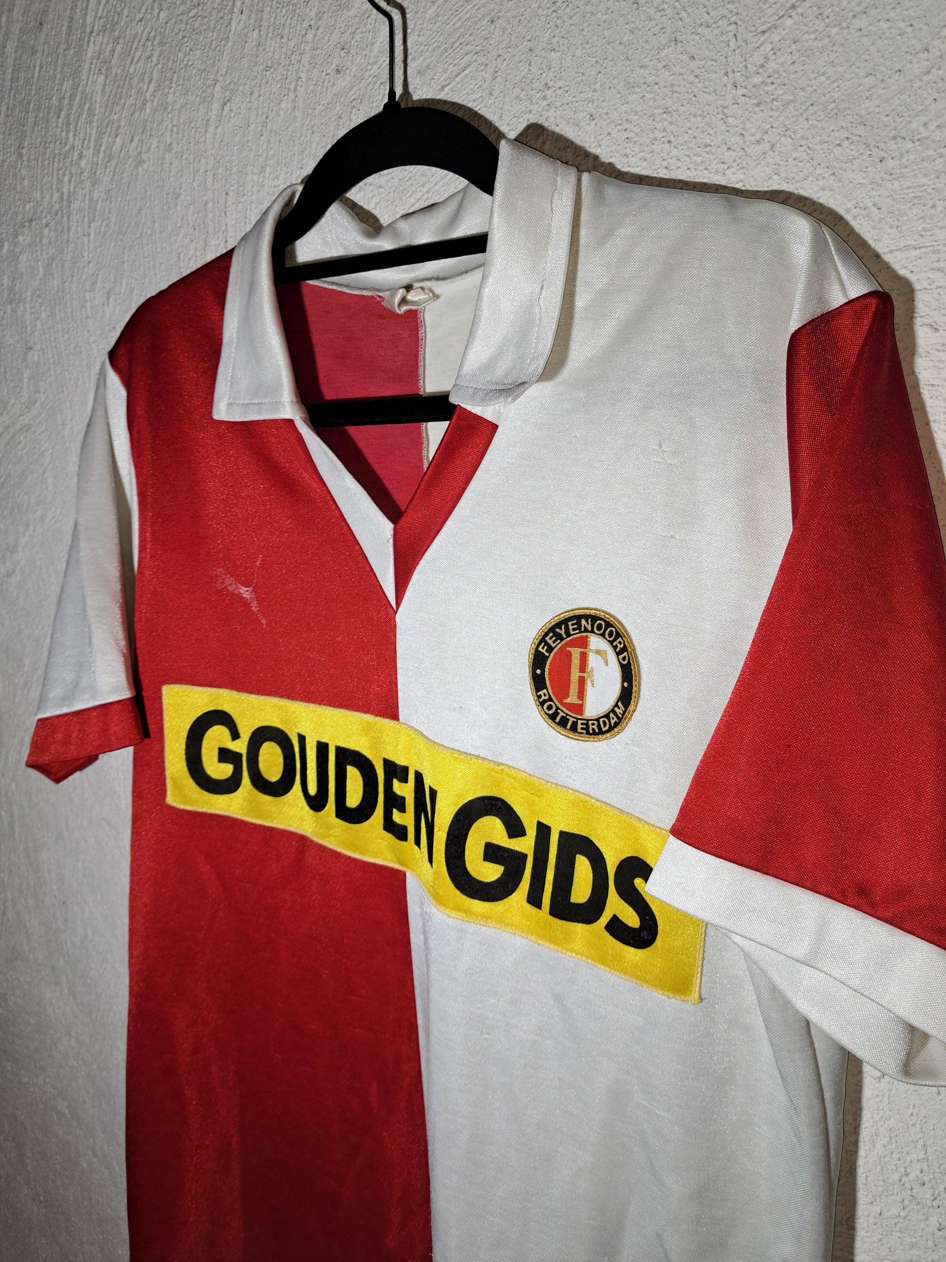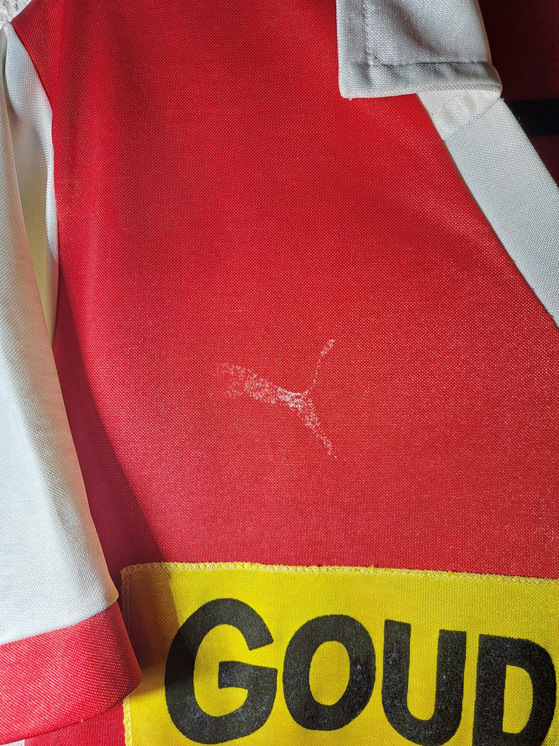 Feyenoord home shirt from the 1983-1984 season, classic half red and white Puma design with the iconic Gouden Gids sponsor. Forever linked to Johan Cruijff’s unforgettable final chapter, when the Dutch legend led Feyenoord to a historic league and cup double. A true De Kuip treasure from one of football’s most poetic seasons.