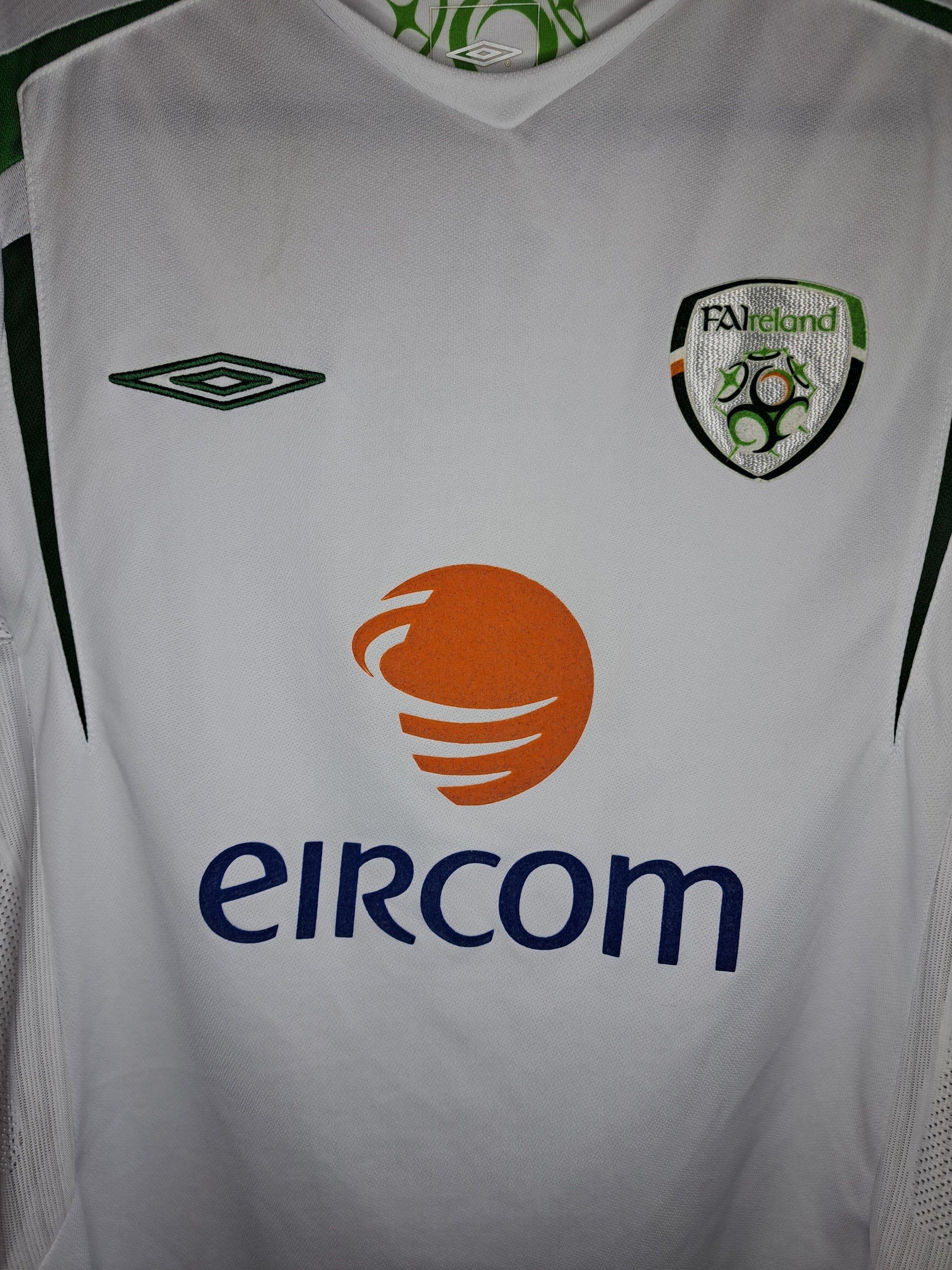 Away shirt as worn when the Irish missed out on qualification for Euro 2008. The side were 'the best of the rest' in their group, finishing 12 and 10 points behind Czech Republic and Germany respectively. Ireland enjoyed wins over Wales, San Marino and Slovakia as well as taking points off the groups top two teams