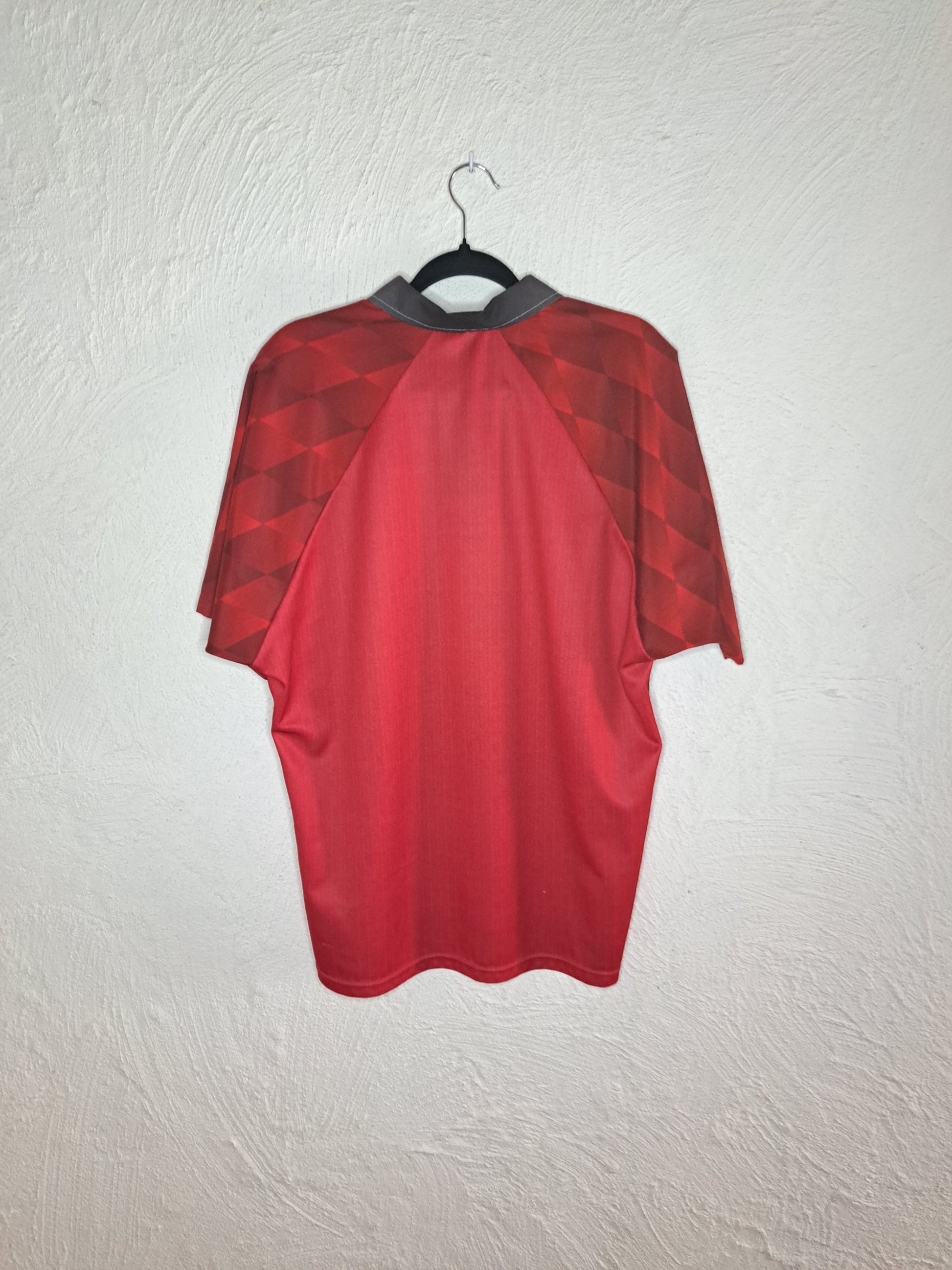 The Manchester United 1996-1997 home shirt is an iconic piece of Premier League history, worn during a season when the Red Devils dominated English football. Produced by Umbro, this legendary jersey is synonymous with the era of Eric Cantona, David Beckham, and Ryan Giggs.