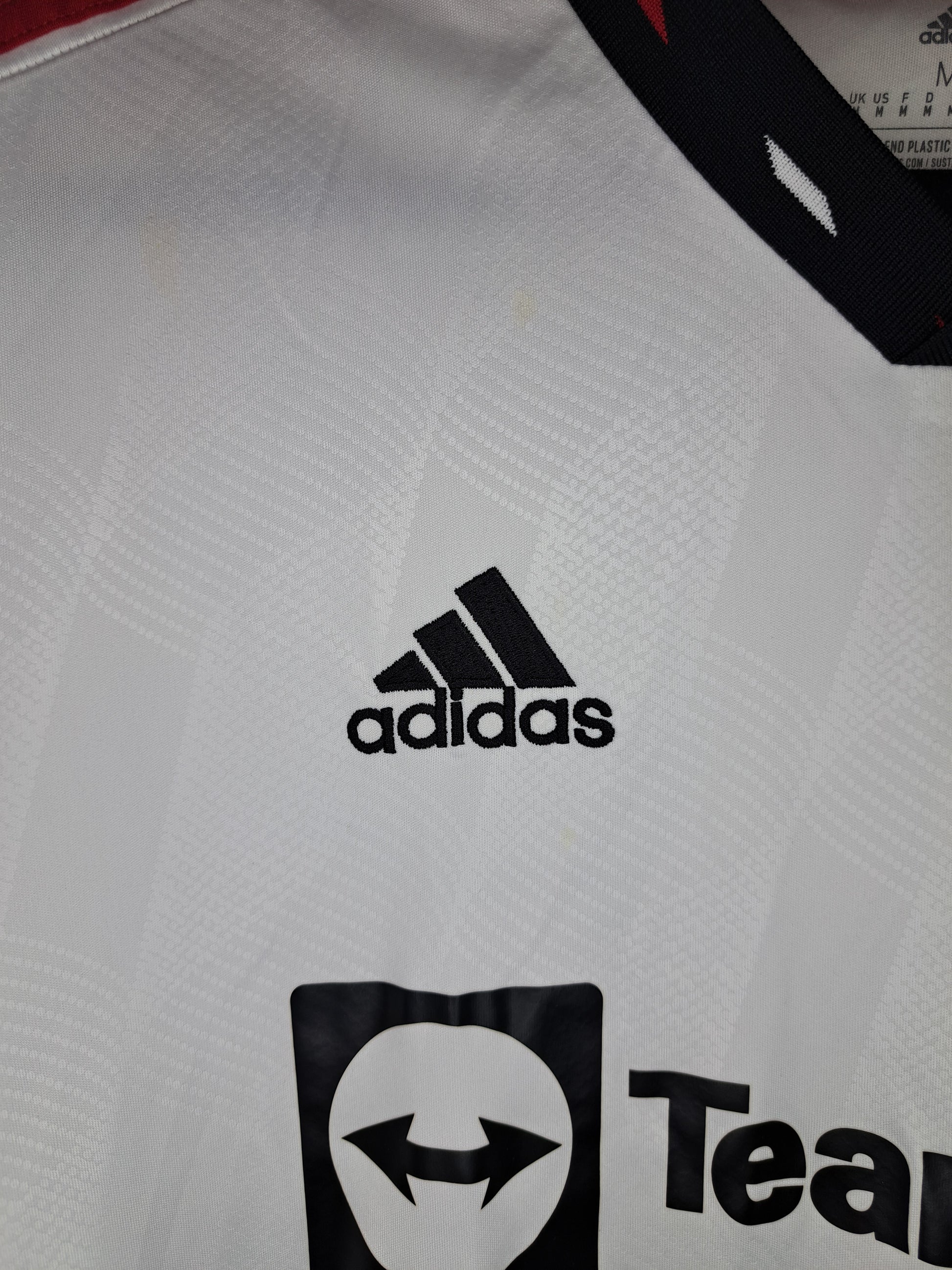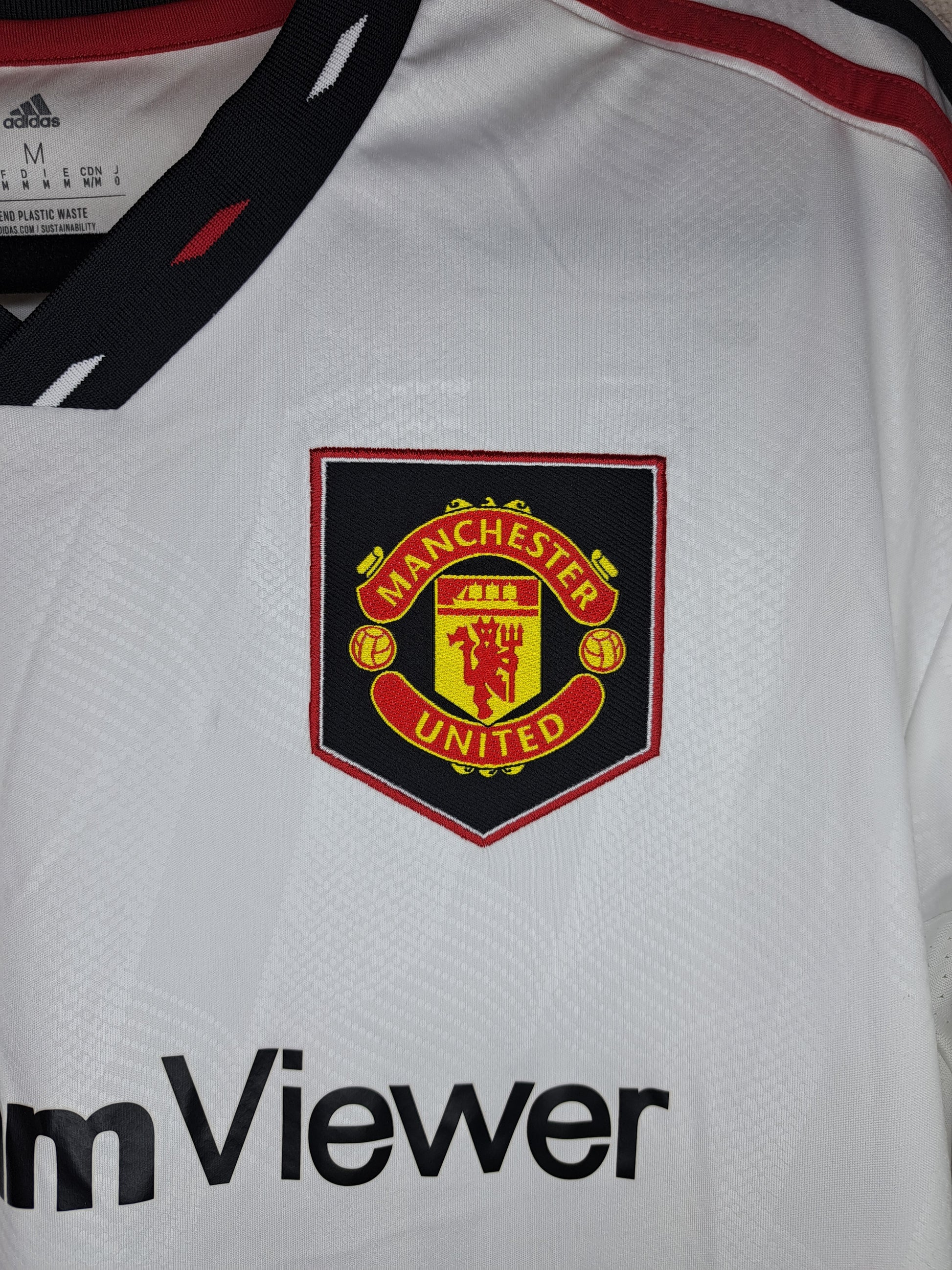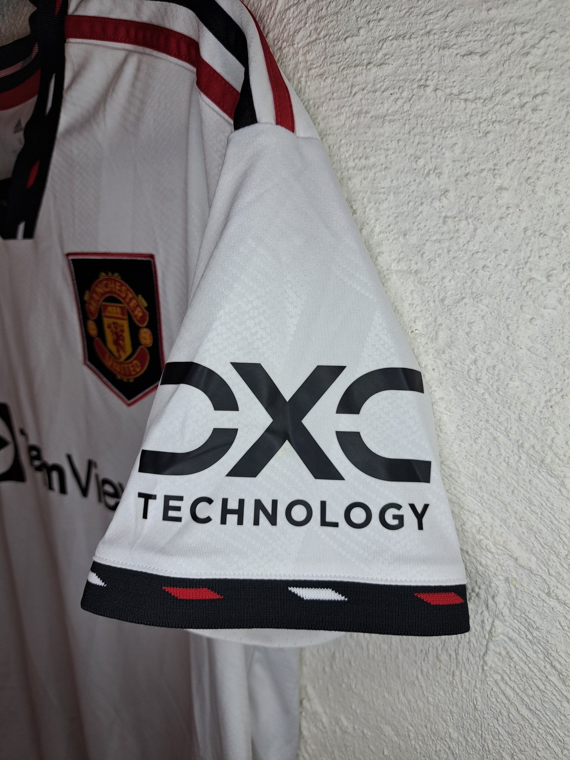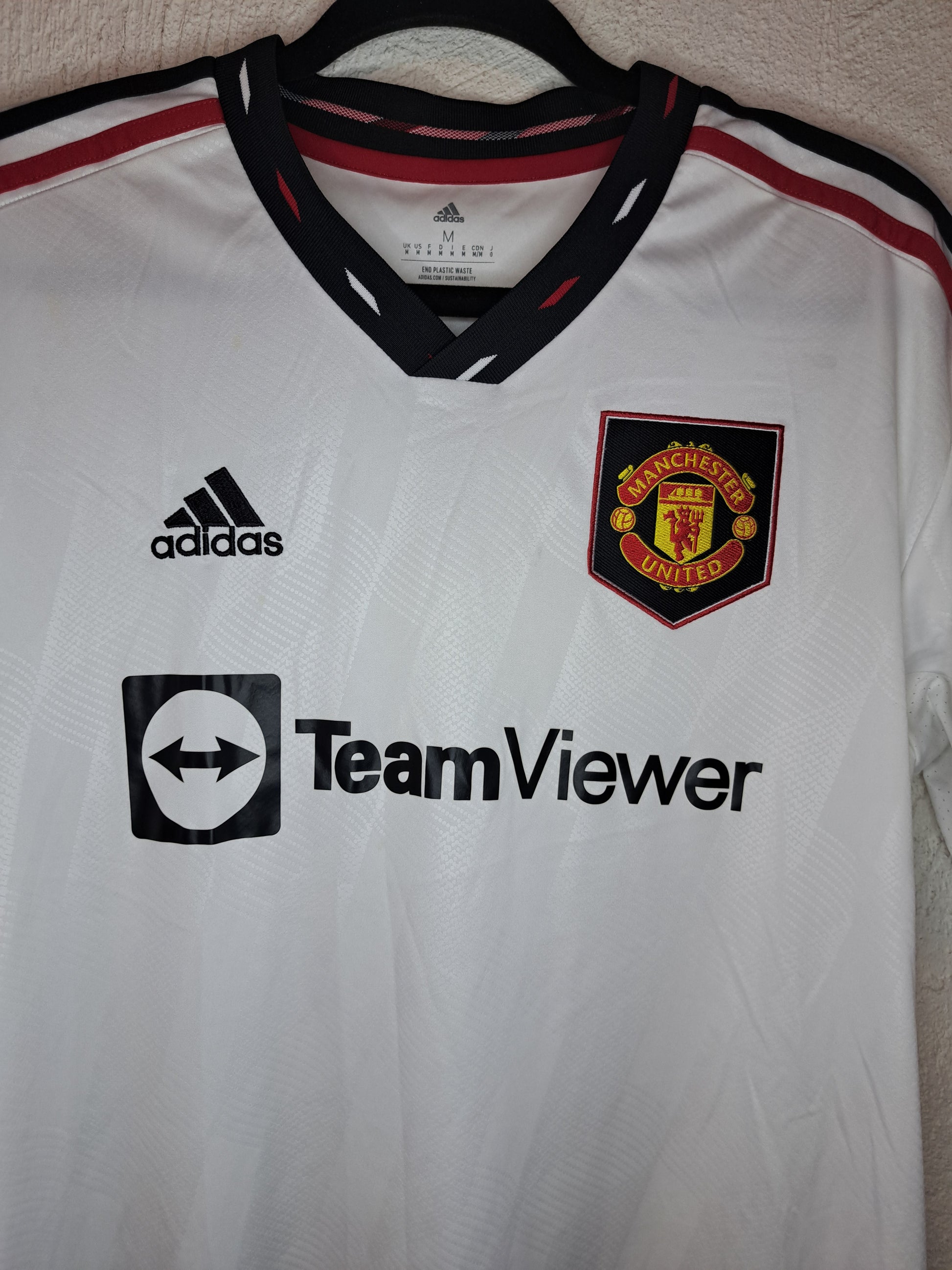 the 2022-2023 Manchester United away shirt channels serious ’90s energy. Crisp white with bold black trim, red accents, and that retro-inspired collar, it’s a fresh twist on a fan-favourite look. Worn during Ten Hag’s promising first season, with Rashford on fire and Lisandro Martínez a new cult hero, this one blends history and resurgence in pure adidas fashion.