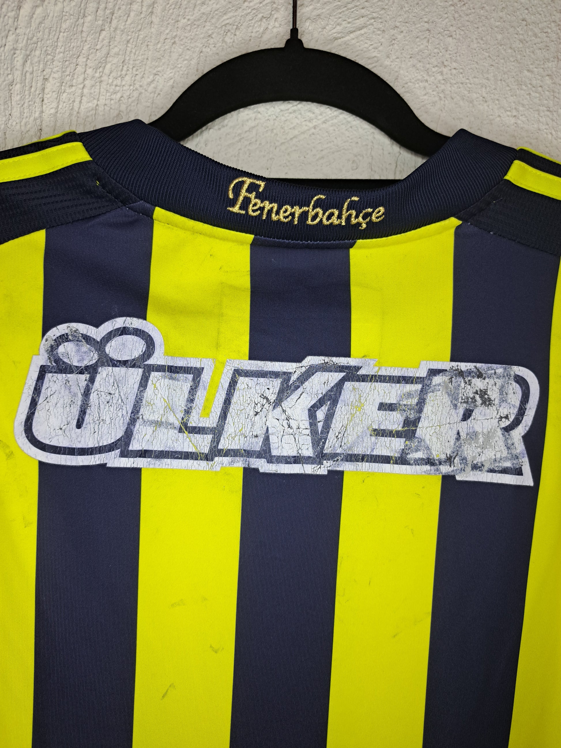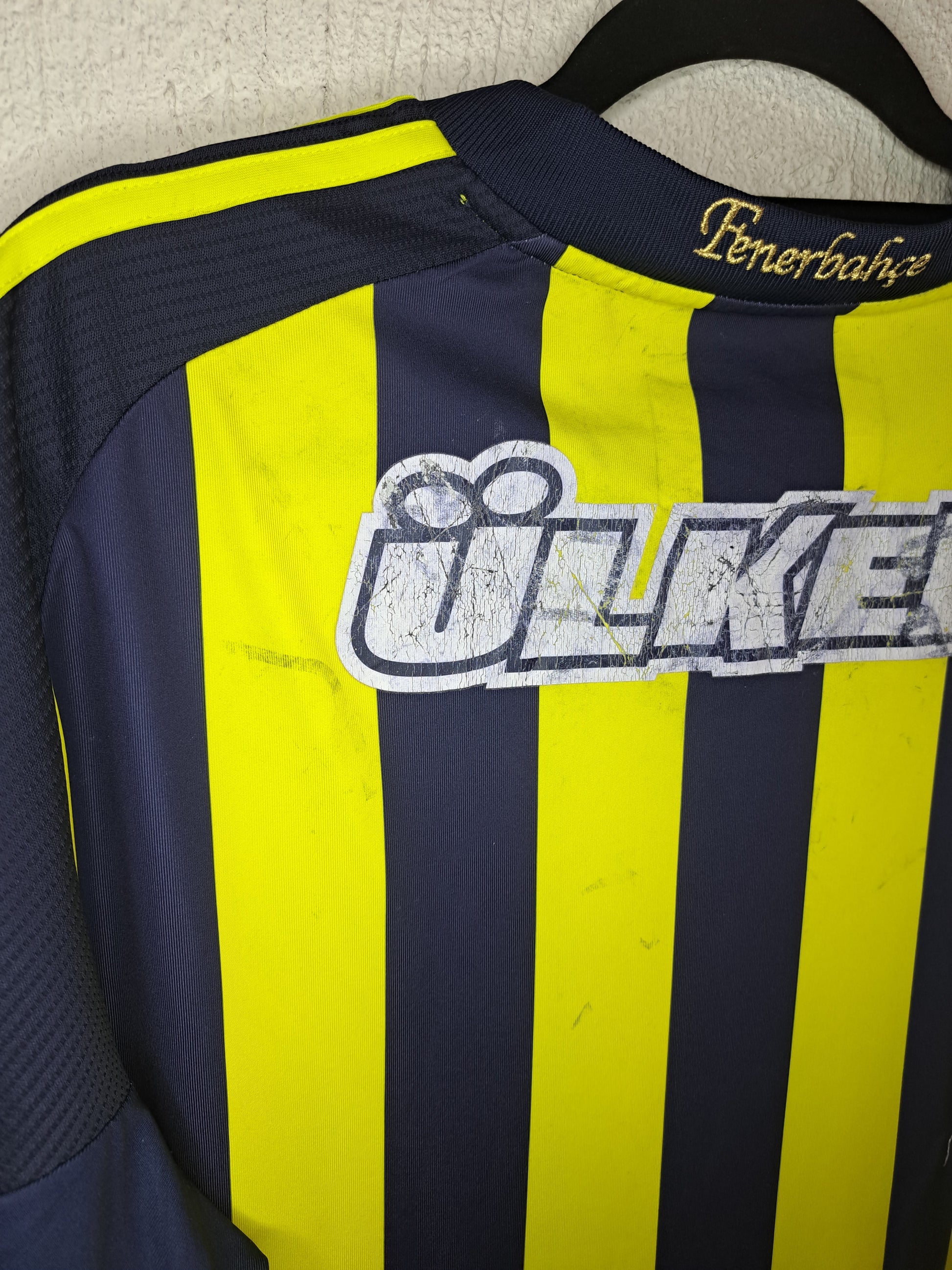 Fenerbahçe home shirt from the 2009-2010 season by Adidas, featuring the club’s traditional navy and yellow vertical stripes with the iconic three stripes on the shoulders. Sponsored by Avea, this shirt was worn during a dramatic season where Fener narrowly missed out on the Süper Lig title.