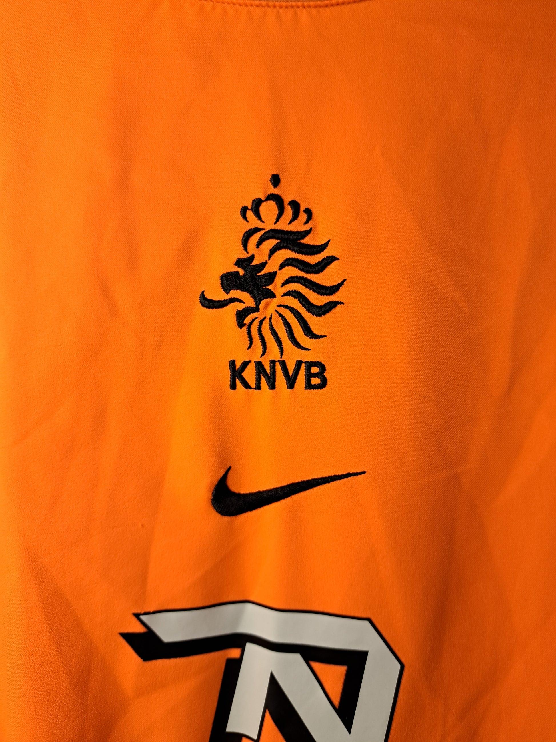 Netherlands training shirt from 1998–99, produced by Nike. Bright orange with a clean design, featuring Nederland across the front and the KNVB crest on the chest. A retro piece from the late ’90s, tied to the era of Bergkamp, Kluivert and the side that thrilled fans at the 1998 World Cup in France.