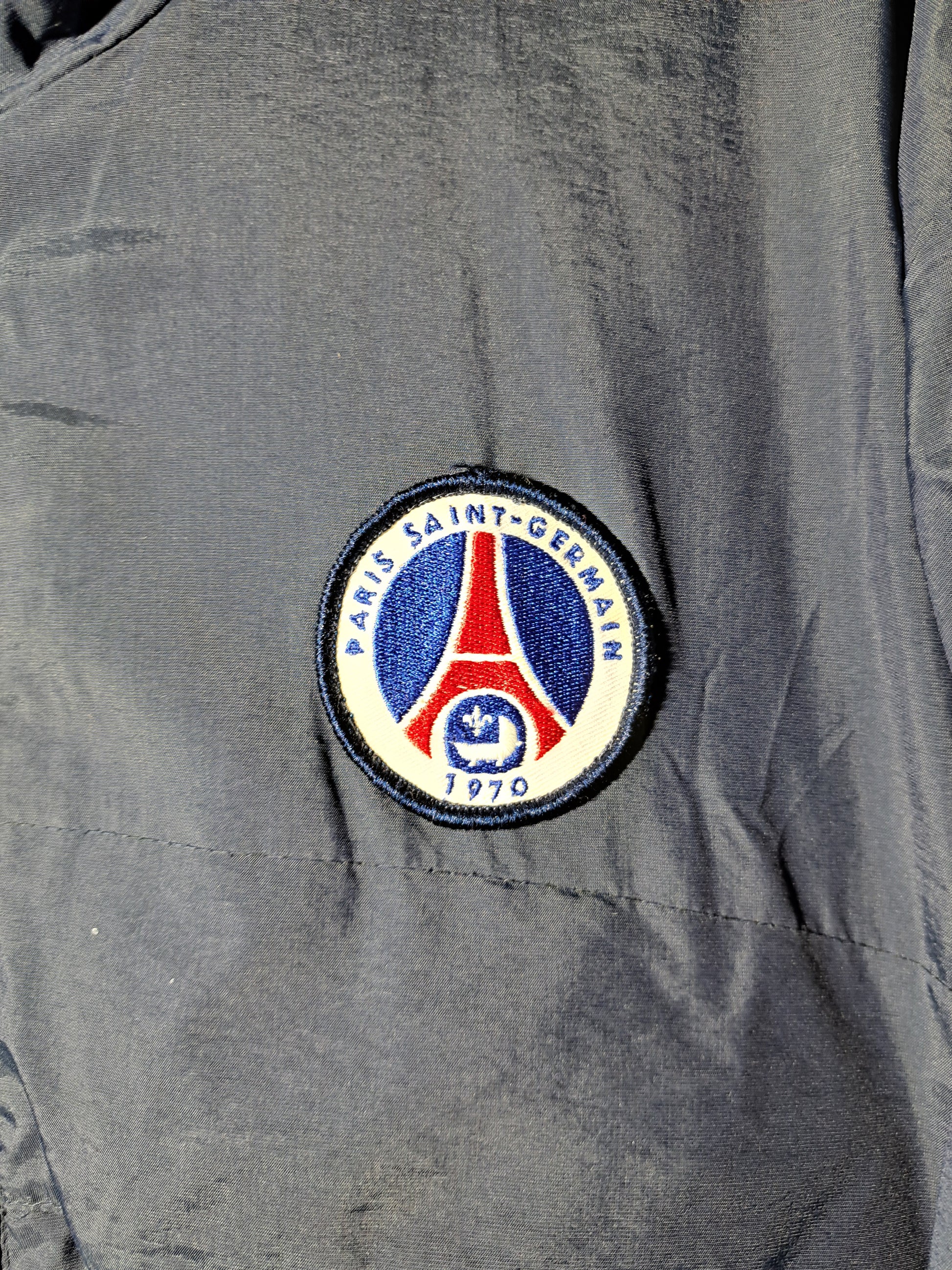 PSG Nike jacket from the 2000-2001 season, classic navy design with the vintage crest. Perfect for keeping you warm on those colder days.