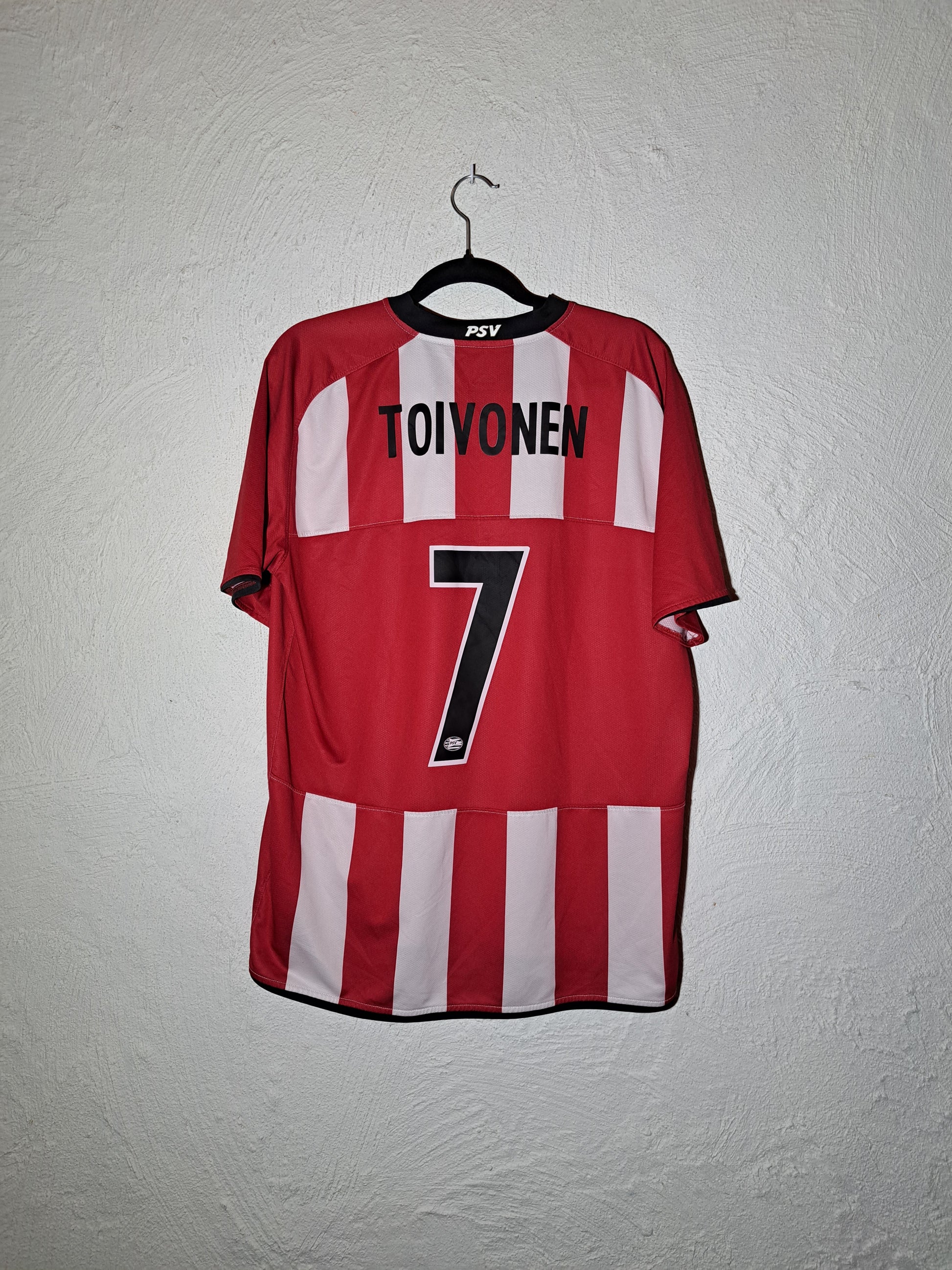 PSV home shirt from the 2010-2011 season, classic red-and-white stripes by Nike with the Philips sponsor. This one carries Toivonen’s name, the intelligent Swedish attacker known for his technique, link-up play, and knack for scoring in big moments at the Philips Stadion.