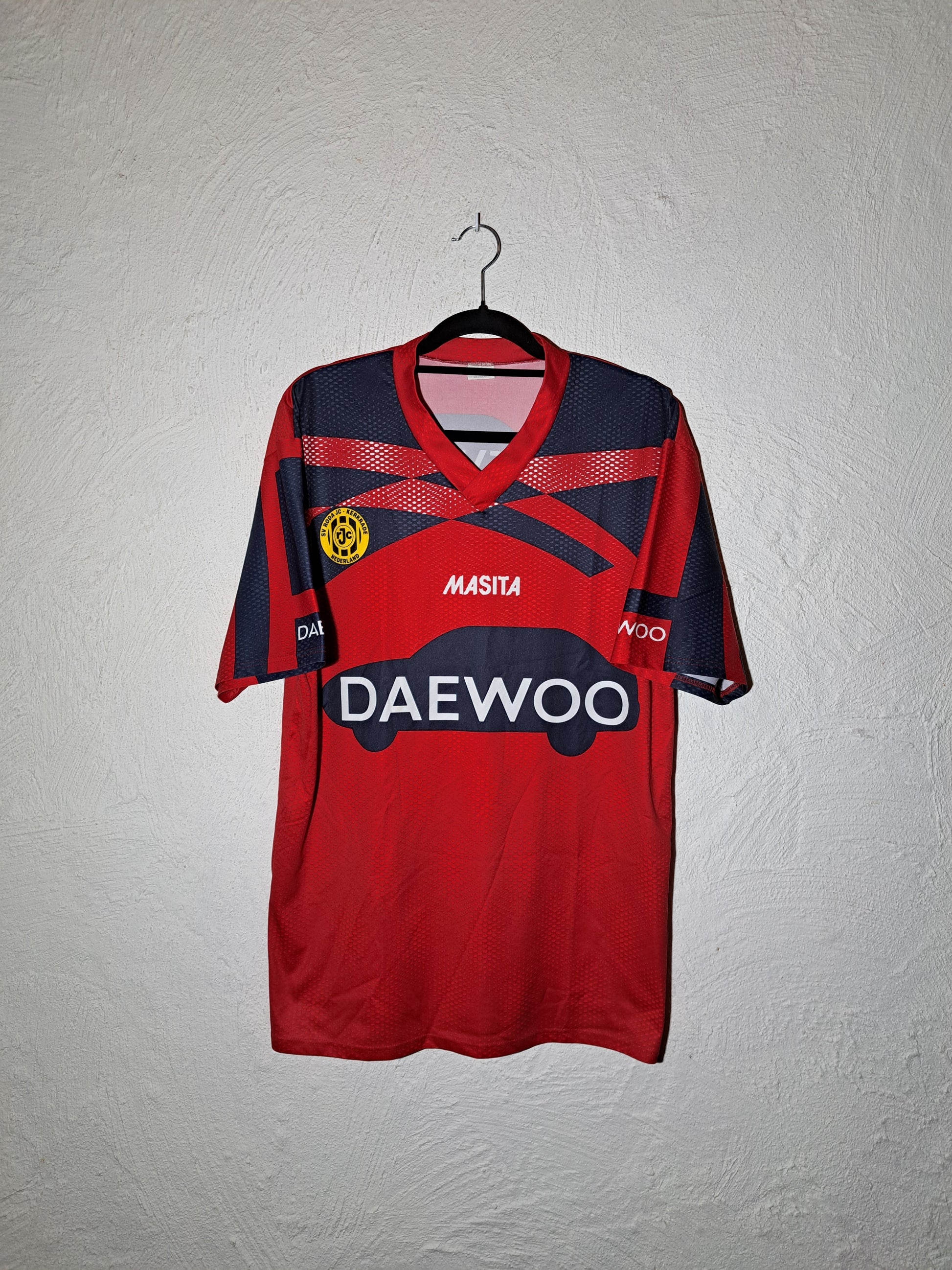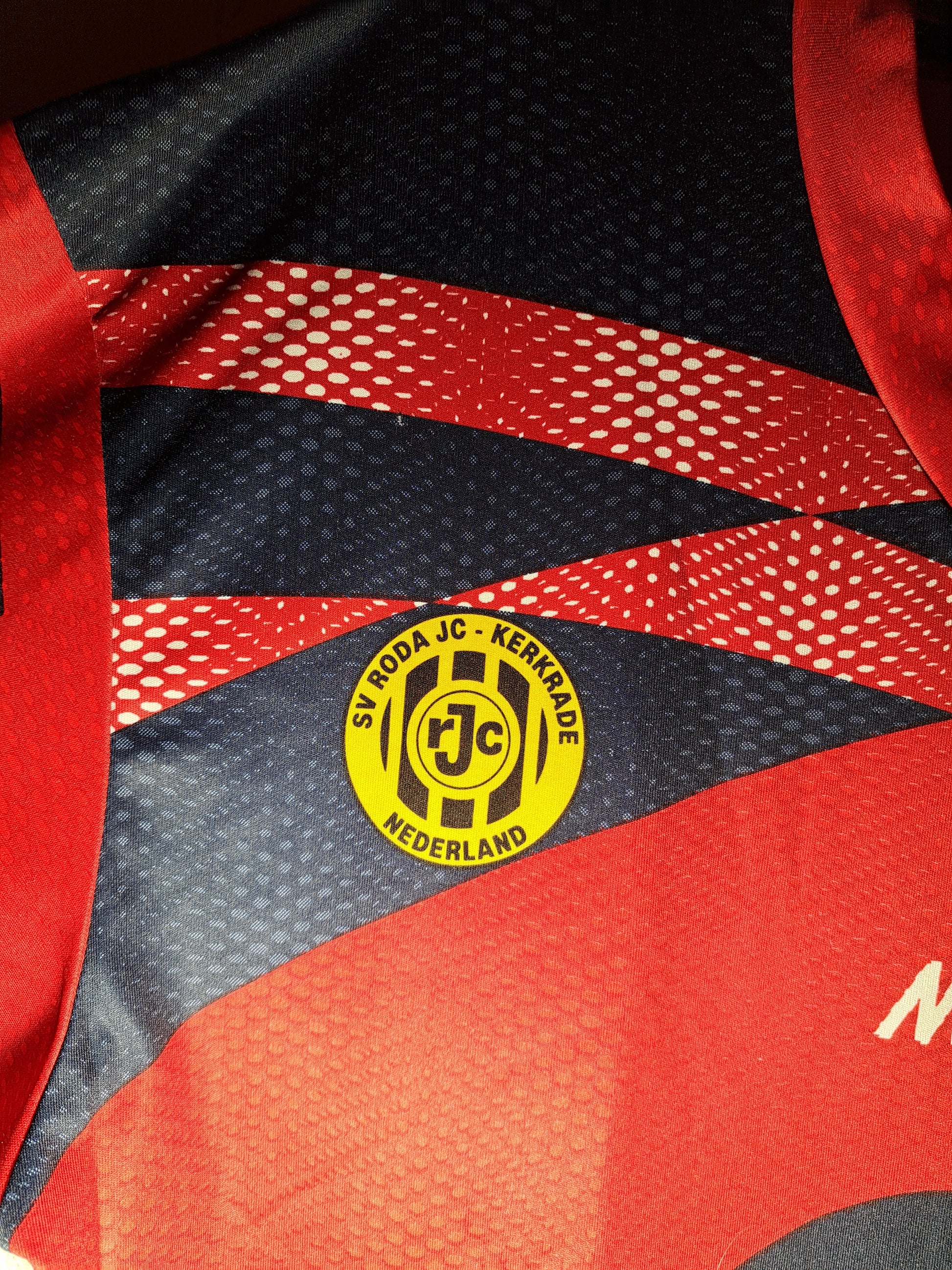 Roda JC third kit from the 1995-1996 season, rare red shirt with matching shorts and the classic Daewoo sponsor. A standout look from the Limburg side’s mid-90s Eredivisie campaigns.