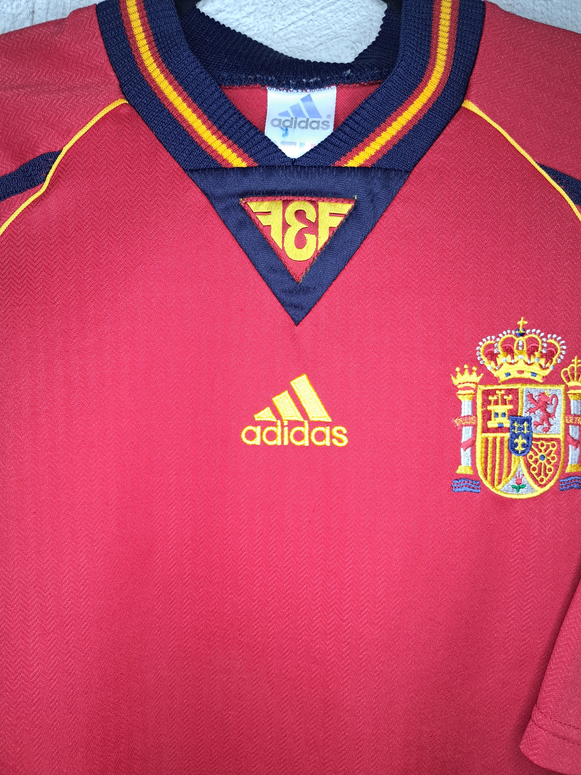 Spain 1998-99 home shirt in classic red with yellow details, a vintage piece from La Roja’s late-90s era.